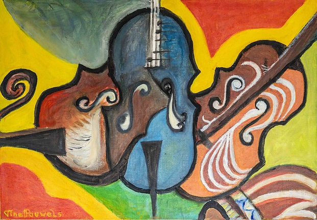 Omschrijving: Tine heeft nog een kubistisch schilderij gemaakt van violen. Ook dat heeft ze vaker gedaan. Pas nu is Tine erachter gekomen dat Chagall dat veel eerder al heeft gedaan.